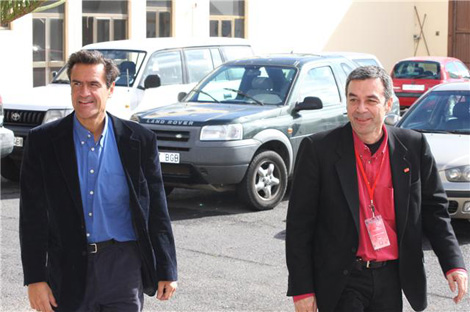 Tras felicitar efusivamente a su homólogo en la Isla, Carlos Espino, López Aguilar criticó la gestión actual del Gobierno de Canarias, dirigido por Coalición Canaria (CC) y el Partido Popular (PP).