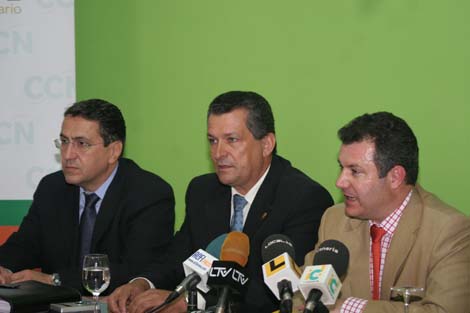 El candidato del CCN a la alcaldía de Haría, junto a Rafael de León (izquierda) e Ignacio González.