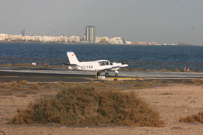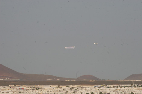 Eran las 16.30 horas la tarde del miércoles cuando un avión monomotor modelo Rally 180 despegaba desde la pista del aeropuerto. A su paso dejó una estela publicitaria de cinco metros de alto y quince de largo que podía verse a varios kilómetros de distancia. La empresa de Pilotos Privados y Trabajos Aéreos Lanza Air realizó un experimento de aviación en la pista del aeropuerto de Lanzarote con el fin de conseguir la autorización por parte de Aena para el arrastre publicitario mediante avión.