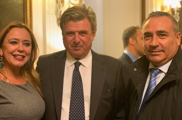 La presidenta del Cabildo de Lanzarote, María Dolores Corujo, y el consejero de Turismo, Ángel Vázquez, acudieron este lunes por la noche a la recepción que en la sede diplomática ofreció el embajador de España en el Reino Unido, Carlos Bastarreche, a todos los españoles que participan hasta el miércoles en la World Travel Market.