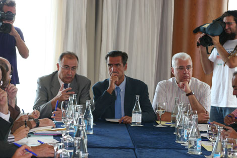 Acompañado del portavoz del Grupo Parlamentario Socialista, Francisco Hernández Spínola, y el secretario general del PSC en Lanzarote, Manuel Fajardo Palarea, López Aguilar insistió en que será en las Cortes Generales donde se discuta la reforma del Estatuto de Canarias.