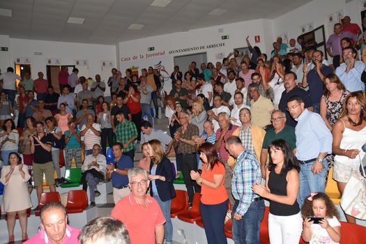 abarrotada, en la que los militantes, afiliados y simpatizantes se entremezclaban con los cargos públicos y orgánicos del partido, según informó posteriormente la organización en nota de prensa.