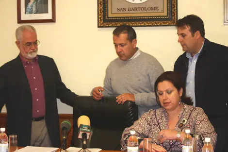 Los concejales del grupo de gobierno PSOE-PIL respladaron al alcalde de San Bartolomé en su comparecencia ante los medios de comunicación.