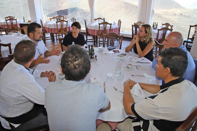 Esta primera ronda de visitas, que recorrió las instalaciones de Montaña de Fuego, el Monumento al Campesino y el Castillo de San José, consistió no sólo en recorrer los emblemáticos centros diseñados por César Manrique, sino también en reuniones con los directores de éstos y los trabajadores en las que Corujo quiso certificar el cambio de enfoque de la nueva etapa que se abre en los CACT.