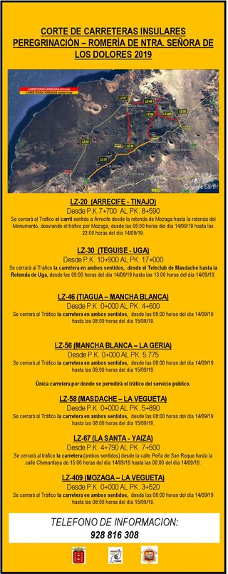 • La circulación discurrirá en sentido único Arrecife-Tinajo desde las 06:00 horas hasta las 22:00 horas del día 14 de septiembre.