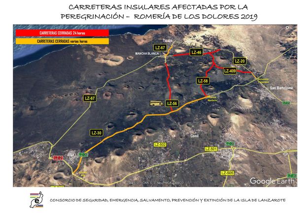 En dicho Plan de Autoprotección también se detallan las restricciones y cortes de tráfico que afectarán a las carreteras insulares con motivo de la multitudinaria romería.
