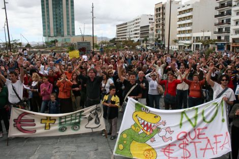 Una riada humana integrada por unas 1.500 personas, según fuentes policiales, más de 1.000 según la organización, partió este sábado del Cabildo Viejo de la Calle Real de Arrecife, prosiguió por la Avenida La Marina, la Dirección Insular de la Administración General y el Casino Club Náutico hasta finalizar en el Parque Islas Canarias, donde la organizadora de la convocatoria, la francesa Leticia Padilla, leyó un manifiesto ante el resto de manifestantes.