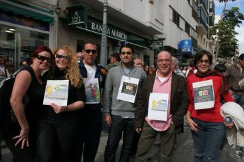 De allí partieron, ante la estupefacción de unos componentes venezolanos de una orquesta y del resto de personas de la calle a los que había cogido por sorpresa, hacia la zona de Correos y la Avenida La Marina, con gritos de “No al monopolio” e “Hiperdino, Hipertimo”, calificando de “calamidad” a dos grandes superficies y con consignas a favor de “Mercado libre ya” o “No llego a fin de mes” y gritos reivindicativos de “El pueblo unido jamás será vencido”.