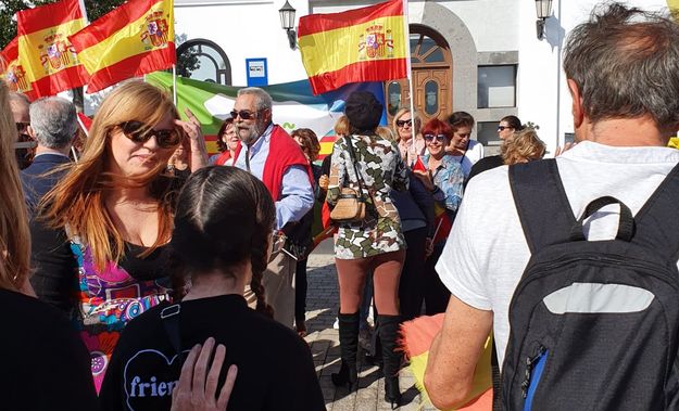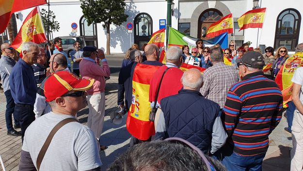 Un grupo de militantes y de simpatizantes de VOX se ha manifestado este domingo enfrente del Ayuntamiento de Arrecife para reivindicar que "España existe", un movimiento que se ha extendido a lo largo de todo el país con concentraciones multitudinarias como la que se ha producido en Madrid. En el caso de Lanzarote, como en el resto del país, el objetivo principal era pedirle al presidente del Gobierno, el socialista Pedro Sánchez, que defienda la Constitución y la unidad de España.