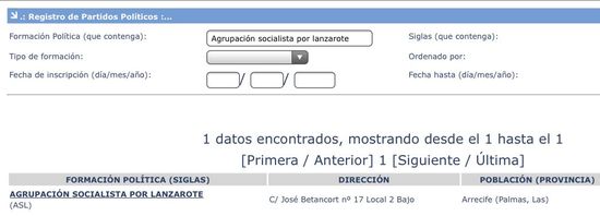 Con sede en el número 17 de la calle José Betancort de Arrecife, la denominación de la Agrupación Socialista por Lanzarote ya es oficial al contar defiinitivamente con el beneplácito del Ministerio del Interior, tras darse curso al documento sellado ante notario.