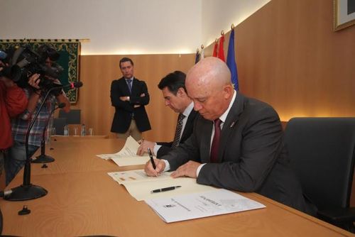 El alcalde de Tías, Pancho Hernández, ha recibido este martes al ministro de Industria, Energía y Turismo, José Manuel Soria. para llevar a cabo la firma de un convenio por el que se determinan las condiciones de concesión de una subvención nominativa por parte de la Secretaria de Estado de Turismo a favor del Ayuntamiento de Tías.