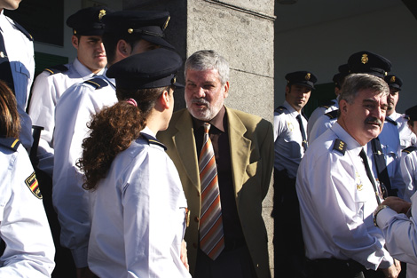 Déniz, durante la presentación de los últimos policías nacionales llegados a la Isla, junto al comisario, José Antonio Fernández.