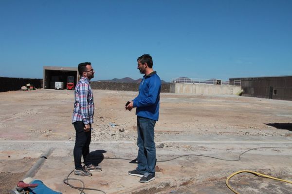 Están a punto de finalizar las obras del proyecto de rehabilitación de la Instalación Desaladora de Agua de Mar (IDAM) Janubio, una intervención que comenzó a finales de 2016 con un coste de 4,6 millones de euros. El presidente del Cabildo de Lanzarote, Pedro San Ginés, y el presidente del Consorcio del Agua, Echedey Eugenio, se acercaron a la zona para ver como la nueva infraestructura -que ahora se ubica en un edificio soterrado de 5 metros de altura- es casi imperceptible desde la carretera.