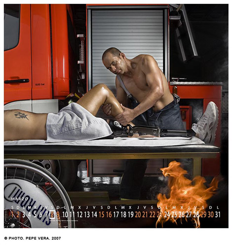 Según Pepe Vera, las fotos del calendario se realizaron el mes pasado en el propio Parque de Bomberos, y este año se ha “pretendido dar un punto de vista más irónico en cada una de las imágenes”. “Me he divertido mucho. Pude prenderle fuego a todo y siempre con la garantía de contar con el Cuerpo de bomberos”, explicó, en relación a los fondos espectaculares de algunas de las imágenes.