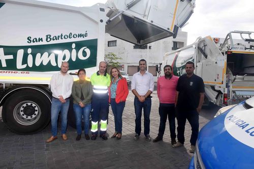 El Ayuntamiento precisa que dos nuevos camiones recolectores compactadores de residuos sólidos de carga trasera estarán destinados a la recogida de residuos sólidos urbanos de origen domiciliario y comercial en todo el término municipal de San Bartolomé, y transportados al Complejo Ambiental de Zonzamas.