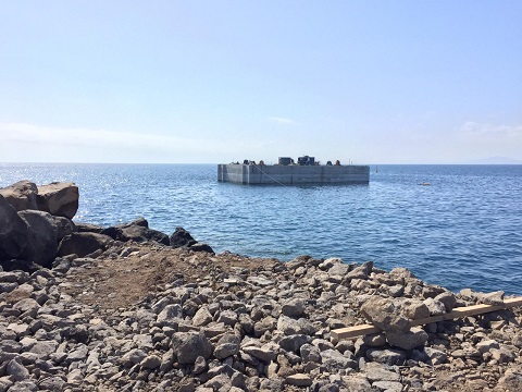 - En el cajonero, atracado en el puerto de Los Mármoles, se encuentra fabricándose el séptimo cajón y la previsión es que en el período de un mes y medio se concluya la elaboración definitiva de los cajones