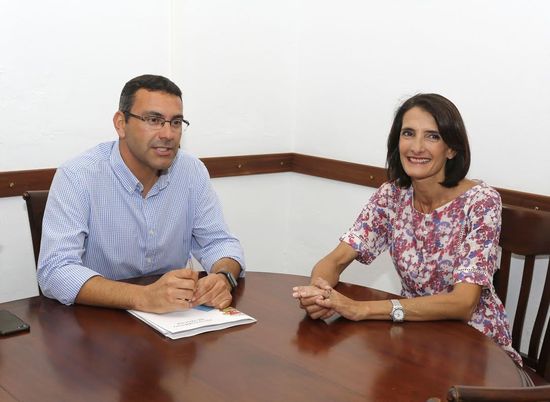 El alcalde de Teguise, Oswaldo Betancort, recibió este viernes por la mañana la visita de la consejera de Turismo, Cultura y Deportes del Gobierno de Canarias, Mariate Lorenzo, en la que se anunció la inminente adjudicación de la obra de rehabilitación del Paseo de Las Cucharas, entre otras cuestiones de interés para el municipio de Teguise, que se encuentra a las puertas de la celebración de un hito histórico como es la celebración de los 600 años de la fundación de la Real Villa de Teguise.