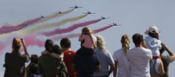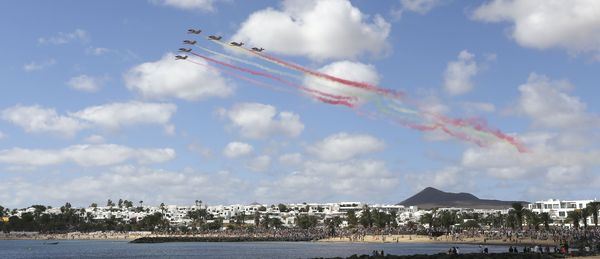 La patrulla acrobática del Ejército del Aire no defraudó este domingo con su espectáculo aéreo sobre Costa Teguise, ante la atenta mirada de miles de personas que se acercaron a Las Cucharas para presenciar una ovacionada exhibición que fue filmada y retransmitida en directo a través de las redes sociales por numeroso público. Así lo describe el Ayuntamiento de La Villa en nota de prensa, exactamente igual que había hecho este diario en su crónica sobre un evento nunca visto antes en la Isla con una participación tan notable.