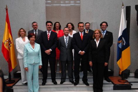 El presidente autonómico, Paulino Rivero, presidió el acto de toma de posesión de los consejeros que conforman el grupo de gobierno en un acto que duró algo más de una hora y en el que al final se hicieron una foto de familia.