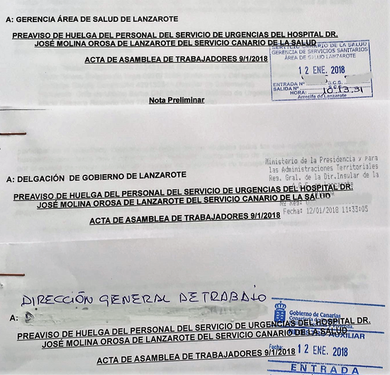 El personal del Servicio de Urgencias del Hospital Doctor José Molina Orosa de Arrecife comunica este viernes que durante esta jornada se ha dado registro de manera oficial al aviso de Huelga anunciado días atrás, que arrancará el próximo lunes, 29 de enero, a partir de las 00:00 horas, y con carácter indefinido.