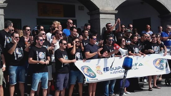 Policías nacionales y guardias civiles han secundado este viernes frente a la Dirección insular de la Administración General del Estado en Lanzarote la equiparación salarial respecto a las policías autonómicas.