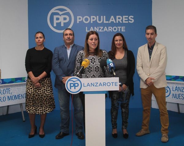 La presidenta del PP en Lanzarote, Ástrid Pérez, acompañada por los cuatro consejeros populares en la Institución, ha acusado además al Partido Socialista (PSOE) de ser "coautor" de la incautación de la desaladora Montaña Roja.