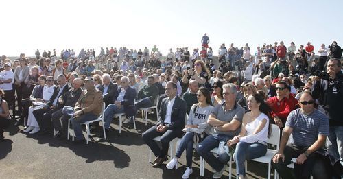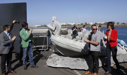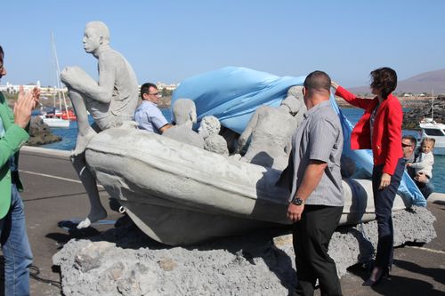 Después de las intervenciones, se procedió a uno de los momentos más emotivos del día: el descubrimiento de “La balsa de Lampedusa”, un conjunto escultórico que representa el viaje de las miles de personas que atraviesan el mar en una embarcación neumática huyendo de la guerra y la miseria y en busca de una vida mejor. DeCaires Taylor quiso realizar esta obra como sentido homenaje a los que lo logran, pero también a aquellos cuyos sueños e ilusiones quedan en el fondo del mar.