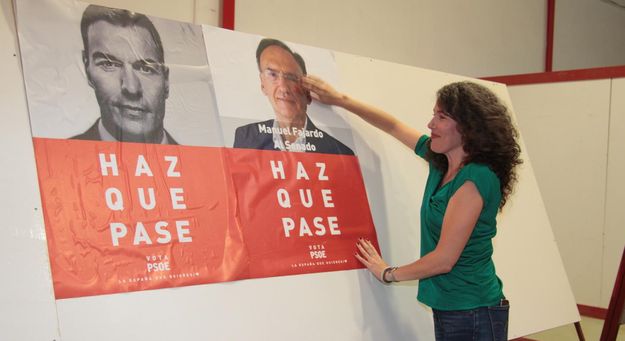 Tras concluir la pegada, los candidatos departieron con los medios presentes. En ese breve coloquio, Manuel Fajardo destacó que existen motivos para confiar en el PSOE y que el Senado no es una cámara ineficaz.