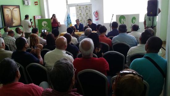 El líder de los nacionalistas ha intervenido en Arrecife, en compañía, entre otros, del secretario de Organización de NC en Lanzarote, Armando Santana, la parlamentaria lanzaroteña y alcaldesa de Yaiza, Gladys Acuña, el portavoz de NC en Tías, Mame Fernández, y el ex alcalde de Haría José Tores Stinga, al que mucho sitúan como próximo líder orgánico de los nacionalistas de izquierdas en Lanzarote, y quien se limitó a declarar antes del acto que "de momento" continúa fuera de la política, ironizando con que "las bicicletas son para el verano".