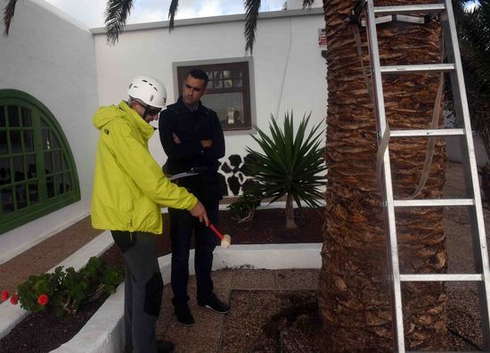 El Ayuntamiento de San Bartolomé ha encargado un estudio a un técnico ambiental especialista en labores culturales de la palmera, con el que poder realizar una prospección fitosanitaria en todos los ejemplares de palmera canaria de la Avenida de Playa Honda para determinar las afecciones bióticas y abióticas que están incidiendo negativamente en la sanidad vegetal de la palmera que ha provocado la pérdida y caída de varios ejemplares.