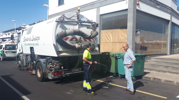 El alcalde, Alexis Tejera, y el concejal de Obras y Servicios Públicos, Raúl de León, han visitado los distintos espacios en los que están realizando los labores los trabajadores/as aprovechando para departir con cada uno de ellos y reiterarles la importancia de poner empeño e ilusión en cada uno de los trabajos que realizan que inciden en el bienestar ciudadano.