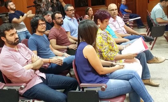San Ginés comparecía en rueda de prensa arropado por los tres alcaldes de su partido en la Isla, Coalición Canaria (CC) en Lanzarote -Oswaldo Betancort, Marci Acuña y Jesús Machín- consejeros y otros cargos públicos de las filas nacionalistas, para anunciar que la Administración que preside recurrirá la apertura de juicio oral por delitos contra la Administración pública, prevaricación y coacciones dictada y notificada el viernes pasado por el Juzgado Número 2 de Arrecife por la incautación de la desaladora de Montaña Roja, que explota la mercantil Club Lanzarote.