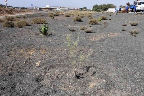 Además de adecentar y limpiar este solar, situado concretamente en la calle Tenderete, frente a la nueva zona comercial de la capital, han repoblado la zona con especies autóctonas. 70 Tabaibas dulces (Euphorbia balsamifera), 8 Tarajales (Tamarix canariensis), 8 Dragos (Dracaena draco) y 70 Veroles (Kleinia neriifolia), ya lucen en esta zona gracias a la colaboración también del Servicio de Medio Ambiente del Cabildo, área tutelada por el consejero Marcos Bergaz, que ha cedido para este fin las distintas especies.