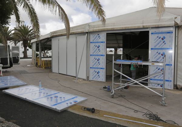 La Carpa Municipal de la Villa lucirá nueva imagen en unos días gracias a los trabajos de renovación del cerramiento perimetral vertical de la infraestructura que acoge numerosos eventos culturales en la plaza del Conjunto Histórico de la Villa.