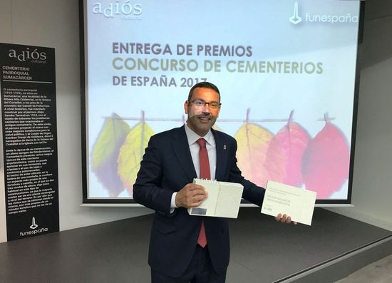 El alcalde de Teguise, Oswaldo Betancort, recibió el galardón a la Mejor iniciativa medioambiental por la candidatura presentada por el Ayuntamiento tras la restauración y reapertura del Cementerio Antiguo de La Villa de Teguise, que además de la dotación económica de 2.000 euros de premio, supone también entrar a formar parte de la Ruta de Cementerios de España.