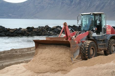 En concreto, y tras recibir la autorización del expediente iniciado ante Demarcación de Costas, el concejo añade arena a las zonas de baño en las playas de Jablillo y El Ancla, en la localidad turística, y a la playa del muelle de Caleta de Famara.