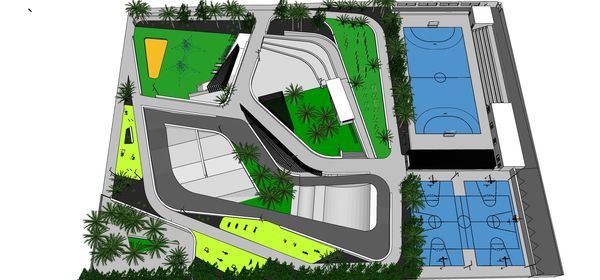 15.000 m2 dedicadas al ocio, deporte y vida saludable con un aparcamiento de 250 plazas y 3.500 m2 de árboles y palmeras