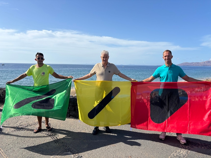 El Ayuntamiento de Tías, a través de la Concejalía de Playas, ha izado hoy las banderas en las cuatro playas más relevantes de Puerto del Carmen, Playa Grande, Playa Chica, Matagorda y Pocillos, con pictogramas diseñados específicamente para que las personas con daltonismo puedan identificar el estado de la mar.