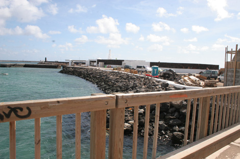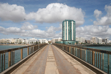 Contiguos a la pileta se han construido varios aljibes para almacenar el agua de mar que luego pasará por unos filtros para ser impulsada hasta la piscina. Pintadas ya no existen, el Islote ha sido pintado de blanco y los servicios están listos. Al pasar el puente se observa lo que será el puesto de control de acceso a La Fermina.
