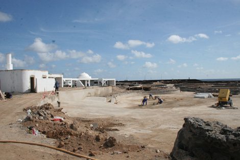La futura piscina de agua salada y el eje sobre el cual girará el resto del equipamiento de ocio están ya terminados. La obra civil, que ha costado tres millones de euros al Gobierno de Canarias, está más que acabada y también la instalación del portón de entrada, diseñado por Juan Gopar. Faltan por confirmar aspectos como la concesión de los servicios y del mantenimiento, algo que podrá resolverse en cuestión de días.