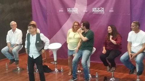 Durante el mismo, el candidato al Senado, Juan Valencia, abandonó la tarima de la casa de la Juventud desde la que intervenían los representantes de Unidos Podemos para acercarse al público y agradecer en primera persona "de corazón" a José Díaz su entrega en la anterior candidatura de IU, todo ello ante la protesta escenificada por el anterior aspirante de la formación progresista, que portó durante el acto una especie de pancarta reivindicando su reedición en dicha candidatura.