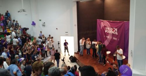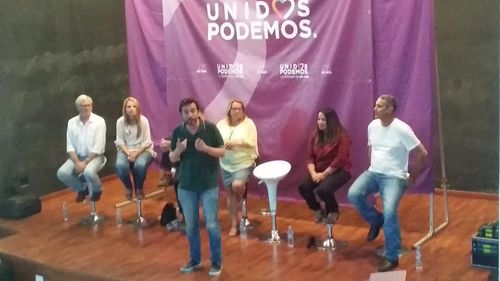 El candidato al Congreso por Madrid, Rafa Mayoral, y el cofundador de Podemos, Juan Carlos Monedero, han participado este lunes desde las 19:30 horas en un acto de campaña de Unidos Podemos en Lanzarote, que ha tenido lugar en la Casa de la Juventud de Arrecife junto a la cabeza de lista por Las Palmas Meri Pita, los también candidatos al Congreso Gonzalo Busqué y Guacimara Paez, la portavoz de Podemos en el Parlamento de Canarias, Noemí Santana, y el candidato al Senado por la isla de Lanzarote, Juan Valencia. Al acto, durante el que el lema cantado por los asistentes fue principalmente "se le puede ganar al PP", también se incorporó la diputada regional por Lanzarote de Podemos en el Parlamento de Canarias, María del Río.