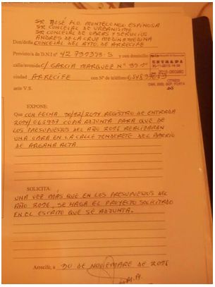 La petición se reiteró en noviembre del año pasado para que se incluyesen inversiones en el presupuesto de 2016. En diciembre, registraron una denuncia en la que se advertía que “el 30 por ciento de la carretera se encuentra hundida y con hoyos”, así como que “la mayoría de las arquetas de la red de saneamiento están sueltas y sin agarres de asfalto”.