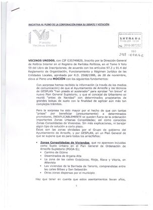 En la Iniciativa se recuerda que en el nuevo Plan no aparecen incluidas como Suelo Urbano, Zonas Consolidadas de Viviendas como las casas del Camino de Güime (construidas hace décadas); el barrio de Diseminados (en Argana Alta); el conjunto vecinal de Las Vírgenes (también en Argana); la zona de las calles Guipúzcoa, Rioja, Álava y Vitoria (en Altavista); las viviendas de la Barriada de Tenorio, comprendidas entre las calles Bilbao y San Sebastián; y un largo etcétera de casas "dispersas por la geografía municipal". "Máxime", alega el concejal de Vecinos Unidos, "cuando la mayoría de las casas cuentan con todos los servicios urbanos, y algunas tienen licencia".