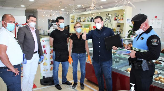 El Ayuntamiento de Yaiza está entregando estos días a responsables de bares, terrazas, tiendas y a peatones del municipio la versión impresa de la guía didáctica de buenas prácticas para el uso del espacio público elaborada por la Administración para fomentar el conocimiento y el respeto de la adaptación de la normativa municipal a las restricciones actuales de distanciamiento social y otras dictadas por las autoridades sanitarias para evitar la propagación del covid-19. El alcalde de Yaiza, Óscar Noda, concejales del Gobierno municipal, técnicos del Ayuntamiento, Policía Local y Protección Civil iniciaron este miércoles el reparto de la guía explicando su contenido y aclarando inquietudes de comercios y viandantes, un documento de referencia que en cualquier caso los interesados pueden consultar en portada de www.yaiza.es
