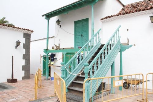 Tal y como describe este jueves en nota de prensa el Ayuntamiento sureño, el concejal de Patrimonio, Óscar Noda, explica que la Institución sustituye el balcón y las escaleras con el visto bueno del Área de Patrimonio del Cabildo de Lanzarote, que colabora en el proyecto aportando la madera necesaria para concluir la obra.