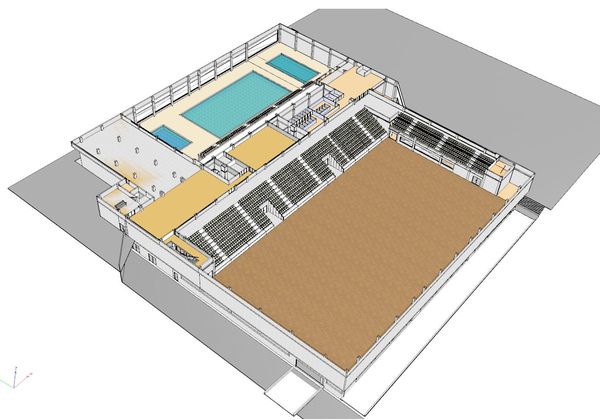 El complejo prevé gimnasio, salas de musculación, vestuarios, cafetería y aparcamiento en semisótano con 80 plazas de parking, algunas, por supuesto, destinadas a personas con movilidad reducida y otras con cargas para vehículos eléctricos.