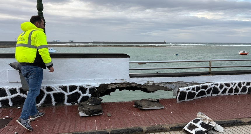 Desde anoche y durante las primeras horas de esta mañana todo el personal municipal adscrito al PEME está asistiendo a la población e interviniendo en las diferentes zonas del litoral de Arrecife que se han visto afectadas por el fuerte oleaje, como varias zonas de los pasos marítimos junto al Parque Temático y el Parque José Ramírez Cerdá. Todas estas zonas peatonales se localizan en terrenos ganados al mar y sus muros perimetrales realizados en piedra volcánica han sufrido desperfectos.