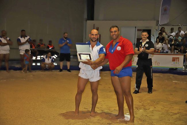 El concejal de Deportes del Ayuntamiento de Arrecife, Roy González y el consejero de Deportes del Cabildo, Francisco Aparicio y la Federación de Lucha de Lanzarote entregaron una placa conmemorativa a Ismael Brito y Marcial Brito, conocido en la isla como “el salao” por sus todos los años dedicados a este deporte y por su contribución al desarrollo de la lucha canaria en Arrecife/Lanzarote