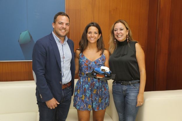 La presidenta del Cabildo de Lanzarote, María Dolores Corujo, y el vicepresidente Jacobo Medina, recibieron este lunes por la mañana a la piloto de rallys que se encuentra unos días en la Isla.